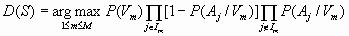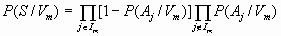 По определению условная вероятность P(S / Vm) есть ни что иное как вероятность того, что в ситуации, когда имеет место класс Vm , эксперты, номера которых принадлежат множеству Im, приняли правильные решения, а остальные ошиблись. Поскольку мы предполагаем, что решения экспертов независимы, то по формуле произведения вероятностей