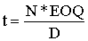 Система с фиксированным интервалом времени между заказами предполагает размещение заказов на восполнение запасов с заданной периодичностью. Определить интервал времени между заказами можно с учетом оптимального размера заказа (EOQ). Для расчета интервала времени между заказами (время потребления заказа) используют формулу: