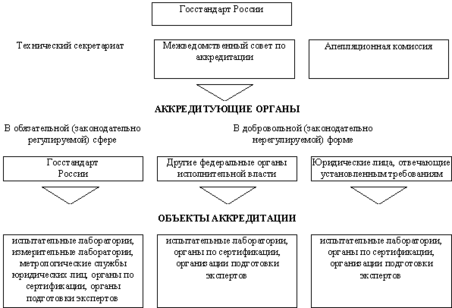 Порядок аккредитации испытательных лабораторий, включая проверочные и калибровочные, определен ГОСТ Р 51000-96, который гармонизирован с EN 45002. Аккредитация лаборатории производится по критериям ГОСТ Р 51000.3-96. Этаны аккредитации соответствуют общепринятым этапам по ГОСТ Р 51000.1-95. Каждый последующий этап проводится при положительном результате предыдущего.