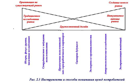 Методы изучения рынка и потребительских нужд достаточно хорошо описаны в литературе по маркетингу - от разработчиков требуется лишь проверка адекватности выбранных средств конкретным условиям коммерциализации продукта. Каждый из представленных на рис.2.3