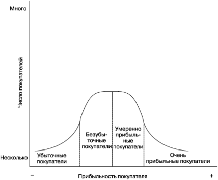 Если построить график прибыли от отдельных покупателей, весьма вероятно, что он будет иметь вид, аналогичный кривой на рис. 5.2.