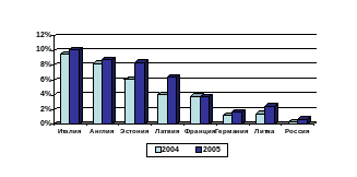 Вместе с тем соотношение факторингового оборота и ВВП в России существенно возросло в 2005 г. по сравнению с 2004 годом.