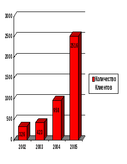 Рис. 1. Динамика количества клиентов факторов за 2002-2005 гг.