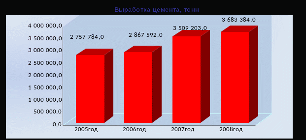 - годовая выработка цемента за истекший год достигла уровня 3 683 384 тонны.