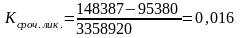 | Коэффициент срочной ликвидности | (Текущие активы – Материальные запасы)/Текущие обязательства |