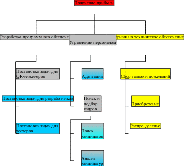 Для формирования общей структуры управления необходимо построить дерево целей. При этом за основу берётся общая цель организации: создание качественного ПО. На рис.1. показано дерево целей ООО «Прикладные системы».