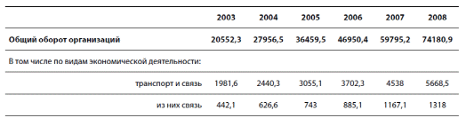 Таблица 2. Оборот организаций по видам экономической деятельности (в фактически действовавших ценах, млрд руб.) Источник: Федеральная служба государственной статистики, Банк России.