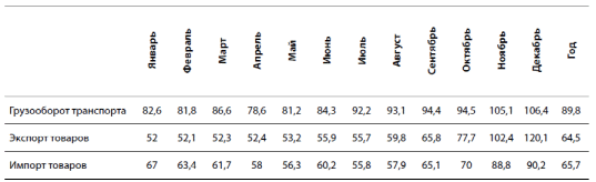Статистика за 2009 г. показывает общее снижение грузооборота на уровне 89,8% относительно показателей предыдущего года (табл. 3). При этом объем экспорта составил 64,5%, а импорта — 65,7% (опять же относительно объема в 2008 г.).