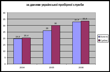 Список лідерів по сріблу виглядає таким чином: ВАТ «Київський ювелірний завод», ТОВ ВКП «Брюс», ЗАТ «Харківський ювелірний завод», ТОВ ЮПК «Агат», ТОВ «Харківська ювелірна фабрика».