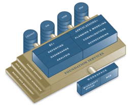 Oracle EPB базируется на Oracle 9i, используя OLAP-функциональность, интегрированную в СУБД, а также Java API. Этот программный продукт тесно интегрирован с финансовым пакетом Oracle e-Business Suite, при этом задействована такая функция, как автоматизация документооборота (workflow), повышающая качество поддержки бизнеса, обеспечиваемое инструментом.