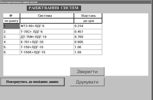 Рис.4. - Загальний вигляд вікна "Ранжування систем"