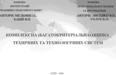 Комп’ютерна програма "Комплексна (багатокритеріальна) оцінка технічних та технологічних систем" дозволяє оцінити машинні агрегати одночасно по всім групам критеріїв (функціональним, експлуатаційних затрат, економічної ефективності, екологічності), тобто прийняти рішення щодо оптимальної структури комплексу машин, враховуючи всі фактори стосовно виробничих умов.