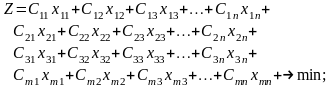 Z=2,5X11+1,6X12+1,9X13+24,6X21+15,6X22+17,8X23+4,5X31+3,8X32+