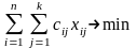 Існує п пунктів виробництва деякої продукції (а1, а2, а3 ,...а і) і к пунктів споживання її (b1, b2, ..., bj), де аі - обсяг випуску продукції і-го пункту виробництва, bj - обсяг споживання у-го пункту споживання. Розглядається найбільш проста, так звана "закрита" задача, коли сумарні обсяги виробництва і споживання рівні. Нехай сіj - витрати по перевезенню одиниці продукту. Потрібно знайти найбільш раціональну схему прикріплення постачальників до споживачів, мінімізуючи сумарні витрати з транспортування продукції. Очевидно, що число альтернативних варіантів тут може бути дуже великим, що виключає застосування методу "прямого рахунку". Отже, необхідно вирішити наступну задачу: