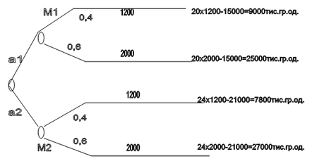 У даному разі основним критерієм добору варіанта була максимізація математичного чекання доходу. У більш складних ситуаціях в аналізі використовують так званий "метод побудови дерева рішень".