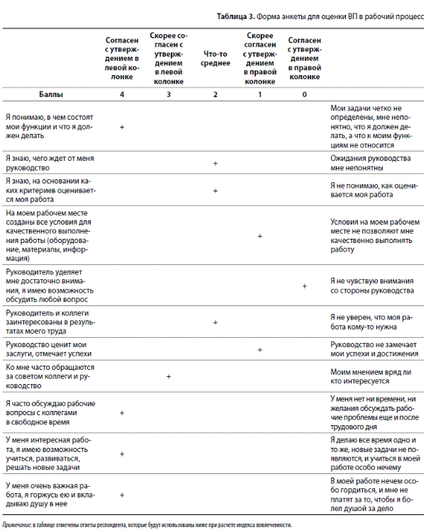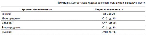 Таким образом, индекс вовлеченности данного работника выше среднего (табл. 5).