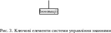 Управління знаннями може бути визначено, як систематичне та організоване застосування суми знань, які щоденно використовуються в організації. Існують дві фази процесу управління знаннями. Перша фаза полягає у збиранні та структуруванні інформації, що генерується в організації у процесі її повсякденної діяльності. Метою цього етапу є збирання, сортування та організація усіх документованих ресурсів, проектів, індивідуальних здібностей тощо. При цьому слід розуміти, що зібрана інформація дуже швидко застаріває. Тому дуже важливою є друга фаза, яка полягає у створенні сприятливого комунікаційного середовища для якомога ширшого розповсюдження зібраних знань серед персоналу, ознайомлення з ними та конвертації цих знань у інновації. Фактично управління знаннями має сприяти еволюції знань у нові знання, які додадуть цінності результатам діяльності організації. Керуючись змістом процесу управління знаннями, можна виокремити ключові елементи цієї сфери діяльності, які представлено на рис. 3.