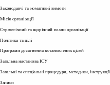 езультатом розроблення ІСУ є відповідний комплект нормативної документації, склад та структура якого подібні до документації на систему управління якістю. Склад документації узагальнено представлено на рис. 4.