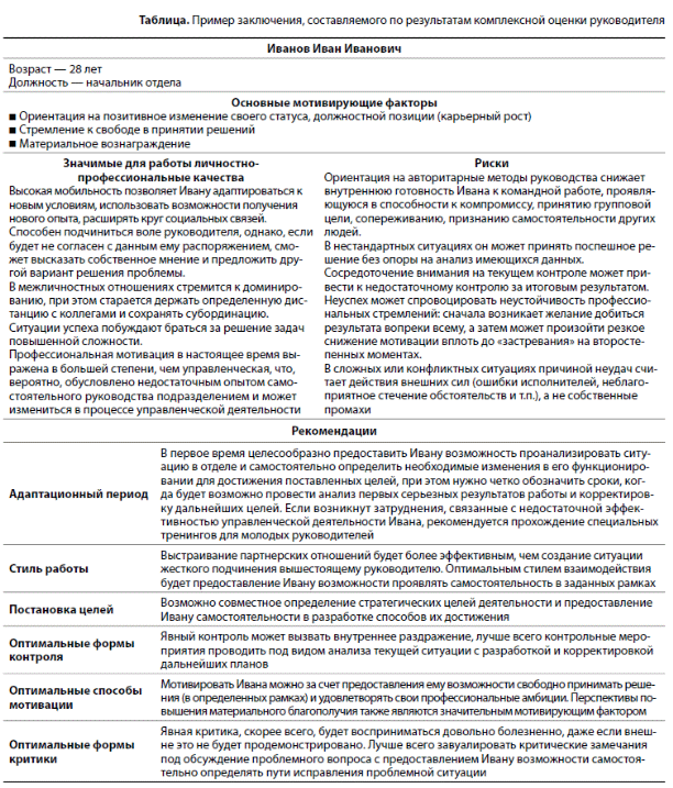 Приведем пример такого заключения. Форма документа была разработана специалистами по персоналу одной из отечественных компаний, но наш опыт показал ее эффективность в несколько модифицированном варианте, который представлен в таблице.