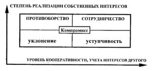 Данные варианты поведения были обобщены двумя американскими специалистами - К.Томасом и Р. Килменном, которые предложили графическое отображение возможных вариантов поведения личности в конфликте и инструмент измерения такого поведения в виде теста
