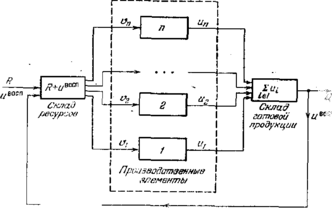 Рис. 3.1. Структурная схема системы производственных элементов с воспроизводимыми ресурсами.