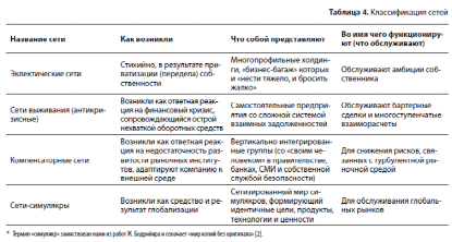 Наше понимание генезиса и классификации сетей [11] идет от понимания диалектической логики, функционального подхода (табл. 4).