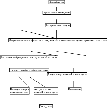 Между потребностью и стимулом как двумя крайними «полюсами» механизма мотивации находится целый ряд опосредующих звеньев, характеризующий процесс восприятия (в том числе оценки) стимула и образования неактуализированного (обычно латентного, скрытого или еще не полностью осознанного) мотива. На этом этапе цикла превращение стимула в детерминирующий поведение мотив стимул может быть предварительно принят, а может быть и отторгнут субъектом.