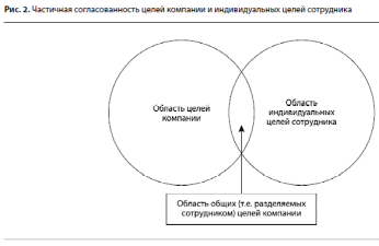 2. На втором этапе происходит частичное согласование индивидуальных интересов и целей сотрудника с целями организационными (рис.2).