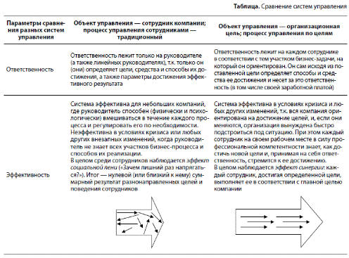При таком подходе объектом управления становится не сотрудник компании, а организационные цели, которые перед ним стоят. Главная задача управляющего при этом - грамотно определить ключевую цель и выделить из нее те подцели, при достижении которых она будет достигнута с минимальными затратами любых ресурсов (в том числе временных и человеческих).