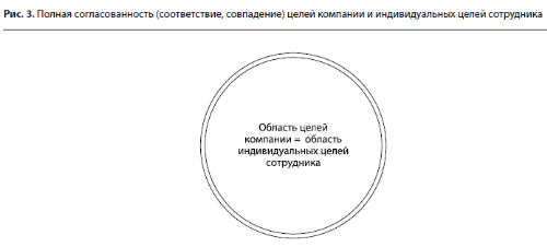 Цели сотрудника и компании снова лежат в разных плоскостях. Принципиальной ошибкой является поиск руководством индивидуальных и значимых целей сотрудника, а впоследствии их удовлетворение в надежде получить мотивирующий эффект. Такие действия связаны с неправильным пониманием природы согласования индивидуальных и корпоративных целей. Этот подход изначально неэффективен, т.к все должно быть как раз наоборот: сотруднику следует искать цели компании, которые он мог бы удовлетворить, чтобы получить свою заработную плату. В этом случае задачей руководства становится формулирование таких организационных целей, которые были бы понятны каждому человеку, работающему в компании, и, более того, создавали бы мотивирующий и стимулирующий эффект для любого сотрудника на определенной должностной позиции.