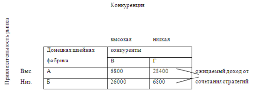 Шаг 3. Формируется платежная матрица с учетом уровня доходов предприятия при различном сочетании стратегий игроков.