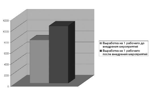 Рис. 2. Динамика выработки на 1 рабочего до и после внедрения мероприятий