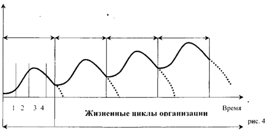 Согласно органическому подходу к управлению, функционирование организации по шкале времени может быть представлено в терминах жизненного цикла, означающего как процессуальность развития так и его стадийность.