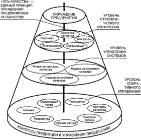 Мы рассмотрели общие принципы построения организаций, их связь с главной задачей — задачей обеспечения качества и эффективности работы организации. Управление организацией по критерию качества и эффективности включает в себя несколько аспектов, из которых важнейшими могут считаться: стратегическое управление по критерию качества; оперативное управление деятельностью предприятия по критерию качества; управление функционированием системы качества на предприятии. Система управления на предприятии едина, поэтому все перечисленные аспекты управления тесно взаимосвязаны (рис. 4).