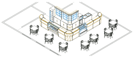 Наше кафе будет называться "Ваниль" по названию самого распространённого и любимого вида мороженного. Главной целью дизайна будет создание теплой уютной обстановки. Интерьер залов должен быть отмечен множеством выразительных деталей из подсвеченного стекла с рисунками. В отделке также использовано дерево. Гамма стен и пола – сдержанная. Главный акцент делается на игре фактур. В зале стены и потолок шоколадного и ванильного цветов. Стеклянные подоконники, как бы парящие в воздухе, барная стойка со стеклянным фасадом и много окон.