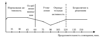 Рис. 9. Зависимость внимания участников совещания от его продолжительности