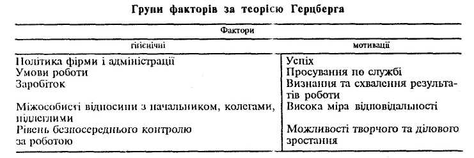 Згідно з двофакторною теорією Герцбсрга всі фактори поділяються на гігієнічні та моти