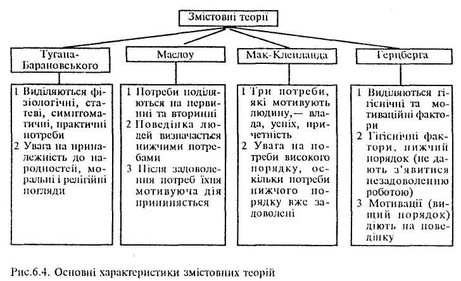 Основні характеристики змістовних теорій подані на рис.6.4.