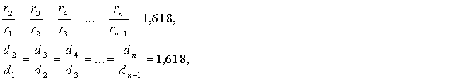 Многочисленными исследованиями установлено, что процессы гармонизации протекают согласно правилу "золотой пропорции". Структура многих известных самоорганизующихся систем подчинена этому правилу. В таких системах отношение целого и его частей находится в соответствии с правилом "золотой пропорции". Число 1,618… называется "золотой пропорцией", а деление отрезка в указанном отношении - "золотым сечением":