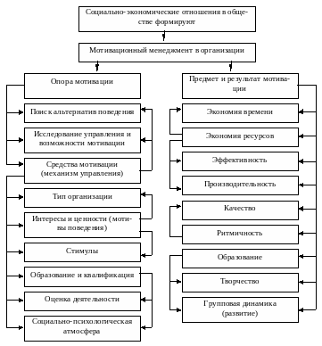 Мотивационный менеджмент, сформированный на основе господствующих в обществе социально-экономических отношениях, позволяющих работнику полностью проявить и реализовать свои способности для достижения поставленной цели, можно представить в следующем виде (рис. 6).