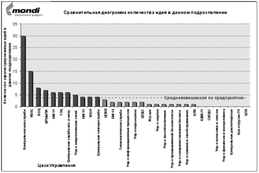 Набранные и-баллы можно перевести в деньги. Стоимость одного и-балла равна 0,03 евро. На эти деньги работники могут приобрести по интернету в зоне Mondi Innovation товары, выставленные там на продажу. В инновационной деятельности предприятия за 2004 год были достигнуты хорошие результаты. Всего за прошедший год было подано 544 идеи. Из них: утверждено 41, в проработке 17, отклоненных 164, внедренных 176. Среднее количество идей с экономией 51, без экономии 125.