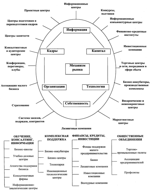 Рис. 1. Институциональная модель инфраструктуры малого инновационного предпринимательства и его поддержки.