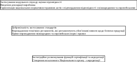 З іншого боку, існуюча систехнічного регулювання України не визнається більшістю торгових партнерів, що не дає змоги відповідним органам надавати сертифікаційну підтримку продукції на зовнішніх ринках і змушує експортерів проводити повторні випробування. Це суттєво збільшує собівартість продукції, нерідко знижує конкурентоспроможність.