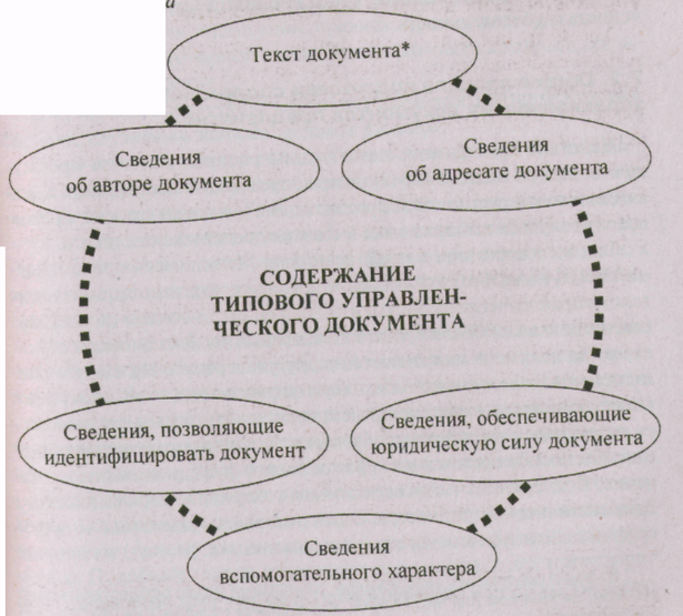 Таким образом, будет более верным рассматривать в качестве содержания управленческого документа не только собственно текст, посредством которого реализуется функциональное назначение того или иного документа, но и соответствующие сведения общего (служебного) характера. К числу таких сведений, в частности, следует отнести: