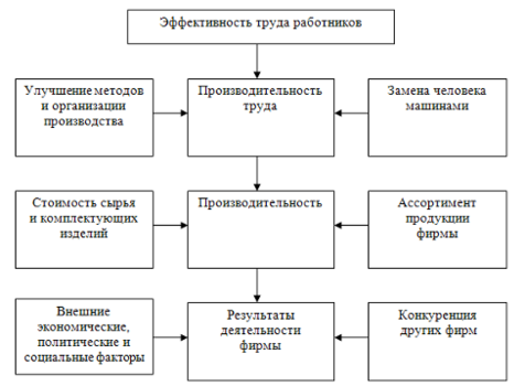 Рис.1. Зависимость результатов деятельности фирмы от эффективности труда работников, внешних и внутренних факторов