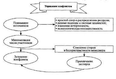 должен постараться минимизировать число его участников. Как правило, чем меньше лиц участвуют в конфликте, тем меньше усилий потребуется для его разрешения. Если менеджер в процессе анализа конфликта сам не в состоянии разобраться в природе и причинах возникших проблем, то он может для этого привлечь компетентных экспертов.