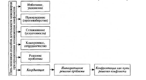 Перечисленные выше способы деятельности менеджеров при преодолении возникающих конфликтов можно представить схемой (рис. 4.)