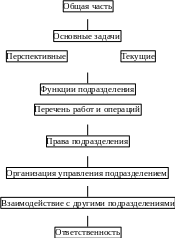 Важнейшим внутренним организационно-регламентирующим документом является Положение о подразделении - документ, регламентирующий деятельность какого-либо структурного подразделения кадровой службы: его задачи, права, функции, ответственность. На схеме представлена типовая структура положения об отделе.