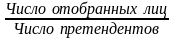 В процессе отбора происходит поиск людей на определенные должности с учетом установленных требований социального института, видов деятельности. Работники отделов кадров анализируют эффективность отбора, используя расчетный коэффициент, так называемый коэффициент отбора, который определяется следующим образом: