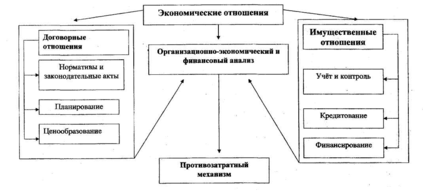Так как хозяйственная деятельность предприятия связана с обеспечением производства материально-денежными средствами, то это предполагает организацию отношений предприятия с поставщиками ресурсов и услуг. Отсюда, экономические отношения можно охарактеризовать и как систему, регулирующую хозяйственные процессы.